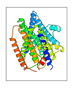 These views are prepared from three orthologuous viewpoints with MolScript. Secondary structures are determined from the C-alpha atom positions of your protein (N-terminal blue, C-terminal red).