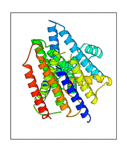 These views are prepared from three orthologuous viewpoints with MolScript. Secondary structures are determined from the C-alpha atom positions of your protein (N-terminal blue, C-terminal red).