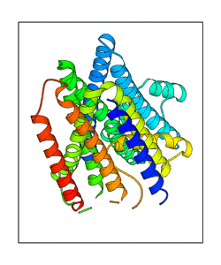 These views are prepared from three orthologuous viewpoints with MolScript. Secondary structures are determined from the C-alpha atom positions of your protein (N-terminal blue, C-terminal red).