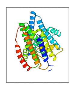 These views are prepared from three orthologuous viewpoints with MolScript. Secondary structures are determined from the C-alpha atom positions of your protein (N-terminal blue, C-terminal red).