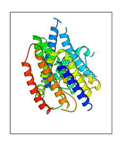 These views are prepared from three orthologuous viewpoints with MolScript. Secondary structures are determined from the C-alpha atom positions of your protein (N-terminal blue, C-terminal red).