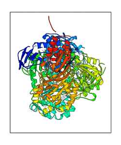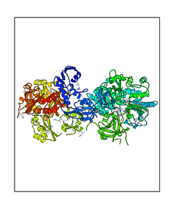 CAUTION: The amplitude range presented in these views corresponds to the highest (DQMAX) and lowest (DQMIN) perturbations chosen for this mode. Secondary structures can break down (and thus disappear from the animation) if the applied amplitudes are too large for Molscript to identify them. The choice of the amplitude is not a NMA result, but has to be done by the user on physical grounds. To change the amplitude range, you can recompute the animation of the desired mode by using the "Compute additional perturbed models with elNémo" section on the results page of your job.