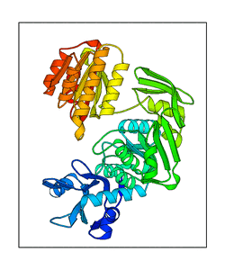 These views are prepared from three orthologuous viewpoints with MolScript. Secondary structures are determined from the C-alpha atom positions of your protein (N-terminal blue, C-terminal red).