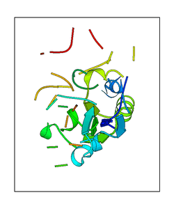 CAUTION: The amplitude range presented in these views corresponds to the highest (DQMAX) and lowest (DQMIN) perturbations chosen for this mode. Secondary structures can break down (and thus disappear from the animation) if the applied amplitudes are too large for Molscript to identify them. The choice of the amplitude is not a NMA result, but has to be done by the user on physical grounds. To change the amplitude range, you can recompute the animation of the desired mode by using the "Compute additional perturbed models with elNémo" section on the results page of your job.