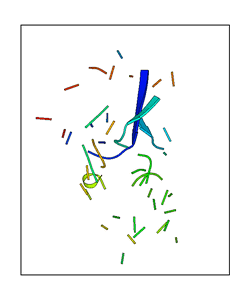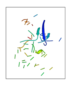 CAUTION: The amplitude range presented in these views corresponds to the highest (DQMAX) and lowest (DQMIN) perturbations chosen for this mode. Secondary structures can break down (and thus disappear from the animation) if the applied amplitudes are too large for Molscript to identify them. The choice of the amplitude is not a NMA result, but has to be done by the user on physical grounds. To change the amplitude range, you can recompute the animation of the desired mode by using the "Compute additional perturbed models with elNémo" section on the results page of your job.