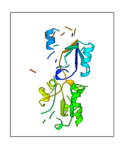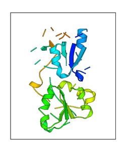 These views are prepared from three orthologuous viewpoints with MolScript. Secondary structures are determined from the C-alpha atom positions of your protein (N-terminal blue, C-terminal red).