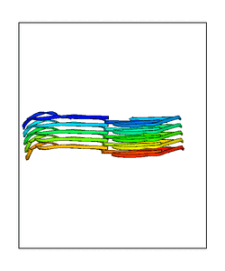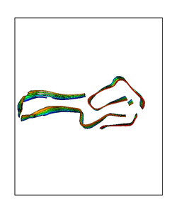 CAUTION: The amplitude range presented in these views corresponds to the highest (DQMAX) and lowest (DQMIN) perturbations chosen for this mode. Secondary structures can break down (and thus disappear from the animation) if the applied amplitudes are too large for Molscript to identify them. The choice of the amplitude is not a NMA result, but has to be done by the user on physical grounds. To change the amplitude range, you can recompute the animation of the desired mode by using the "Compute additional perturbed models with elNémo" section on the results page of your job.
