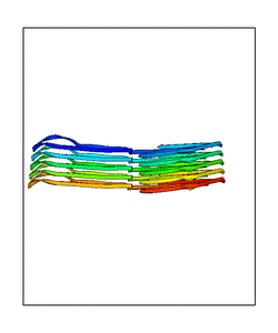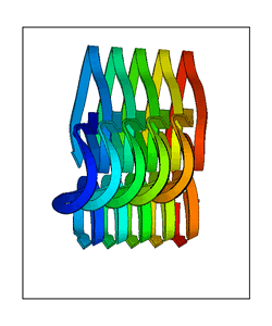 CAUTION: The amplitude range presented in these views corresponds to the highest (DQMAX) and lowest (DQMIN) perturbations chosen for this mode. Secondary structures can break down (and thus disappear from the animation) if the applied amplitudes are too large for Molscript to identify them. The choice of the amplitude is not a NMA result, but has to be done by the user on physical grounds. To change the amplitude range, you can recompute the animation of the desired mode by using the "Compute additional perturbed models with elNémo" section on the results page of your job.