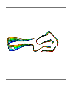 CAUTION: The amplitude range presented in these views corresponds to the highest (DQMAX) and lowest (DQMIN) perturbations chosen for this mode. Secondary structures can break down (and thus disappear from the animation) if the applied amplitudes are too large for Molscript to identify them. The choice of the amplitude is not a NMA result, but has to be done by the user on physical grounds. To change the amplitude range, you can recompute the animation of the desired mode by using the "Compute additional perturbed models with elNémo" section on the results page of your job.