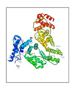 These views are prepared from three orthologuous viewpoints with MolScript. Secondary structures are determined from the C-alpha atom positions of your protein (N-terminal blue, C-terminal red).
