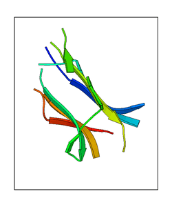 CAUTION: The amplitude range presented in these views corresponds to the highest (DQMAX) and lowest (DQMIN) perturbations chosen for this mode. Secondary structures can break down (and thus disappear from the animation) if the applied amplitudes are too large for Molscript to identify them. The choice of the amplitude is not a NMA result, but has to be done by the user on physical grounds. To change the amplitude range, you can recompute the animation of the desired mode by using the "Compute additional perturbed models with elNémo" section on the results page of your job.