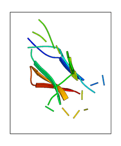 CAUTION: The amplitude range presented in these views corresponds to the highest (DQMAX) and lowest (DQMIN) perturbations chosen for this mode. Secondary structures can break down (and thus disappear from the animation) if the applied amplitudes are too large for Molscript to identify them. The choice of the amplitude is not a NMA result, but has to be done by the user on physical grounds. To change the amplitude range, you can recompute the animation of the desired mode by using the "Compute additional perturbed models with elNémo" section on the results page of your job.