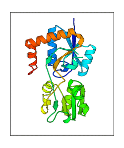 These views are prepared from three orthologuous viewpoints with MolScript. Secondary structures are determined from the C-alpha atom positions of your protein (N-terminal blue, C-terminal red).