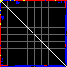 This matrix displays the maximum distance fluctuations between all pairs of CA atoms and between the two extreme conformations that were computed for this mode (DQMIN/DQMAX). Distance increases are plotted in blue and decreases in red for the strongest 10% of the residue pair distance changes. Every pixel corresponds to a single residue. Grey lines are drawn every 10 residues, yellow lines every 100 residues (counting from the upper left corner).