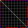 This matrix displays the maximum distance fluctuations between all pairs of CA atoms and between the two extreme conformations that were computed for this mode (DQMIN/DQMAX). Distance increases are plotted in blue and decreases in red for the strongest 10% of the residue pair distance changes. Every pixel corresponds to a single residue. Grey lines are drawn every 10 residues, yellow lines every 100 residues (counting from the upper left corner).