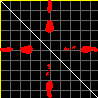 This matrix displays the maximum distance fluctuations between all pairs of CA atoms and between the two extreme conformations that were computed for this mode (DQMIN/DQMAX). Distance increases are plotted in blue and decreases in red for the strongest 10% of the residue pair distance changes. Every pixel corresponds to a single residue. Grey lines are drawn every 10 residues, yellow lines every 100 residues (counting from the upper left corner).