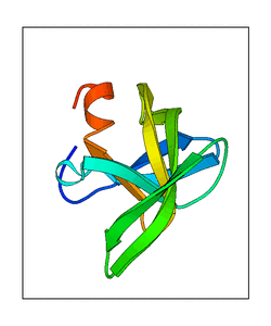 These views are prepared from three orthologuous viewpoints with MolScript. Secondary structures are determined from the C-alpha atom positions of your protein (N-terminal blue, C-terminal red).
