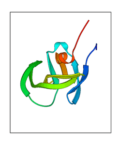 These views are prepared from three orthologuous viewpoints with MolScript. Secondary structures are determined from the C-alpha atom positions of your protein (N-terminal blue, C-terminal red).